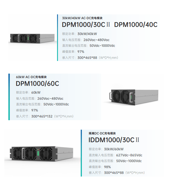 直流充电模块以 “高可靠・易运维” 为核心,涵盖 40KW、60KW 及 DC-DC 核心模块。通过并联冗余架构强化系统容错性,确保单模块故障不影响整体运行;模块级带电插拔 “故障即换” 功能,将运维窗口期从小时级压缩至分钟级,全方位提升系统可用性,支撑高负荷充电场景。
